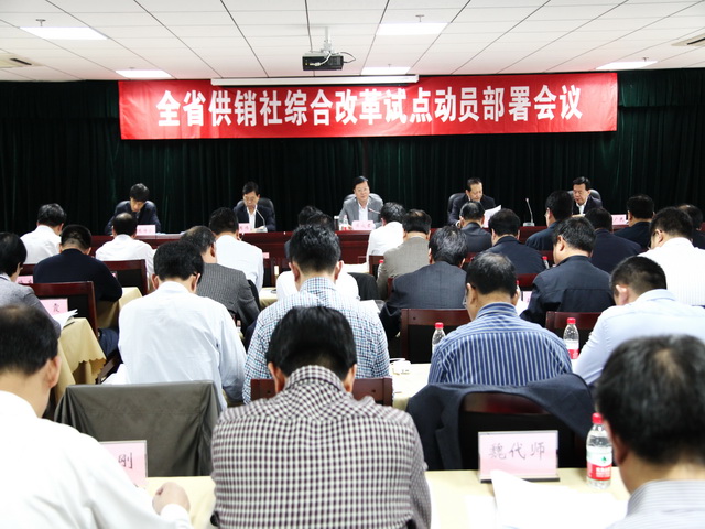 省供销社综合改革试点动员部署会议现场 党组书记、理事会主任侯成君在会上作重要讲话 党组副书记、监事会主任史进传达全国总社会议精神 党组成员、理事会副主任孙国伟主持会议 4月17日,全省供销社综合改革试点动员部署会议在济南召开。会议传达贯彻全国供销合作总社五届九次理事会议暨五届六次监事会议和供销合作社综合改革试点动员部署会议精神,就全省供销社综合改革试点作动员部署。省供销社党组书记、理事会主任侯成君作重要讲话,党组副书记、监事会主任史进传达全国总社会议精神,党组成员、理事会副主任孙国伟主持会议。各市供销社主任,部分县(市、区)供销社主任,省供销社各领导、机关副处级以上干部,省供销社各直属事业单位、各出资企业主要负责人共130人参加会议。 会议指出,开展供销社综合改革试点,是党中央、国务院着眼于全面深化农村改革、加快推进农业现代化新形势作出的重大部署。今年的中央1号文件以及党和国家领导人都对供销社改革发展提出明确要求,全国总社对山东省供销社承担改革试点寄予厚望,并得到了山东省委、省政府的高度重视和全力支持。省委副书记、省长郭树清多次听取省供销社工作汇报,并对供销社综合改革试点提出明确要求,省委副书记王军民、副省长赵润田两位分管领导亲自负责、靠上指挥,并分别担任山东省供销社综合改革试点领导小组组长和副组长。会议动员全省各级供销社抓住机遇用好机遇,树立信心下定决心,以高度的责任感和强烈的使命感,以“蹄急而步稳”的姿态,推进综合改革试点,力争在关键环节和重点领域取得突破,为全国供销社改革发展探索路径、积累经验。 会议强调,要准确把握供销社综合改革的正确方向和重点任务,按照国办复函精神和总社批复方案要求,重点围绕体制机制改革、服务规模化、流通现代化和农村合作金融四个方面,积极推进全省供销社综合改革试点。一是以加快体制机制改革为重点,进一步明确合作经济组织的功能定位。自下而上组建农民合作社联合社,与各级供销社联合社一套机构、两块牌子,同时加快组织改造和职能转变,促进实体性合作经济组织建设,构建上下贯通、运行高效的新型合作经济组织体系;进一步创新联合合作机制,推进系统上下社有企业产权联结和业务联合,形成产权明晰、责权明确、上下贯通、分级所有的经营管理新体系。二是以突出服务规模化为重点,打造农业社会化服务的主渠道。加快构筑供销社与村“两委”、农民合作社和资金互助组织“四位一体”工作机制,进一步完善“保姆式”“菜单式”土地托管方式,开展农业生产全程社会化服务,全面落实全省2000万亩土地托管5年规划,探索建立经营性和公益性相结合的可持续服务机制,努力打造成为农民生产生活提供综合性、规模化服务,体现国家意志和政策导向的“国家队”。三是以突出流通现代化为重点,成为农村商品流通的主导力量。强化“网”的思维,加快用现代流通理念、信息化和物流技术改造供销社传统经营网络,建设现代化流通网络,着力培育品牌企业,深化“新网工程”建设,逐步形成跨区域、跨层级,上下贯通、纵横一体的全省供销社现代化流通网络,把供销社打造成为保供给、稳市场、惠民生的主导力量。四是以合作金融业务为重点,建立符合农村实际的新型合作金融服务体系。依托农民合作社及联合社推动农民资金互助合作社发展,探索开展农民互助合作保险的方式和途径,积极开展融资担保业务,加强农村合作金融业务监管,确保新型农村合作金融服务体系风险可控、安全高效、稳步发展。 会议要求,全省各级供销社要进一步解放思想、敢于担当,凝聚共识、形成合力,因地制宜、统筹谋划,加强领导、精心组织,积极开展综合改革试点申报工作。要正确处理好解放思想和实事求是的关系,整体推进和重点突破的关系,改革试点和日常工作的关系,改革、发展和稳定的关系,既要胆子大,又要步子稳,确保改革稳步有序推进。申报的试点方案要突出准确性、可行性和可复制性。 根据全国供销总社批复的方案要求,这次综合改革试点将在全省选择20个市、县供销社开展,其中选择2—3个市开展市级单位试点并每市选取2—3个县进行县级单位试点,其它试点县级单位从全省部分市选取,新型农村合作金融试点的10个县包含在试点总数中。试点申报以市为单位进行,实施方案需经当地党委、政府同意后,于5月10日前上报省供销社综合改革试点领导小组,对实施方案进行综合评估,选择那些基础条件好、改革积极性高、代表性强的市、县进行试点。6月上旬,拟以山东省供销社综合改革试点领导小组名义召开会议,正式启动综合改革试点工作。